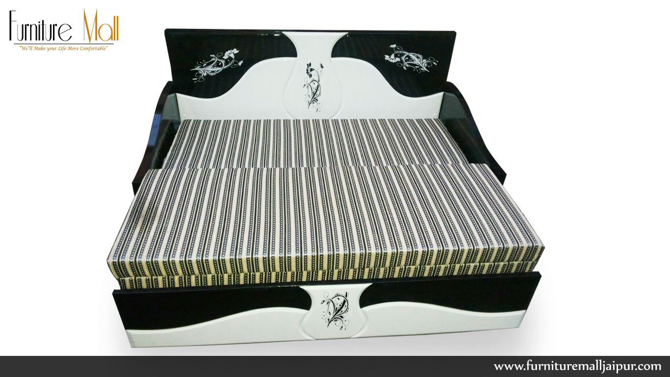Teak Wood Sofa Cum Bed With Matteress.Deco polish black & white colour